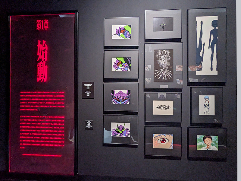 エヴァンゲリオン初号機の大型フィギュアが印象的に展示されたフォトスポットのエントランスから始まり、シリーズの原点であるTVアニメの設定や新劇場版シリーズの原画など、実際に放送された映像の制作資料がこれまでにない規模で展示され、壮大な世界観がどのように作られたのか、その一端を垣間見ることができます。