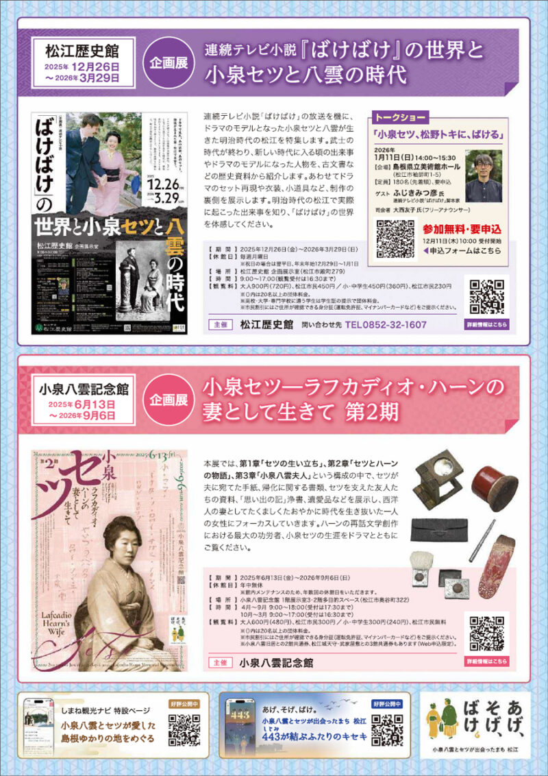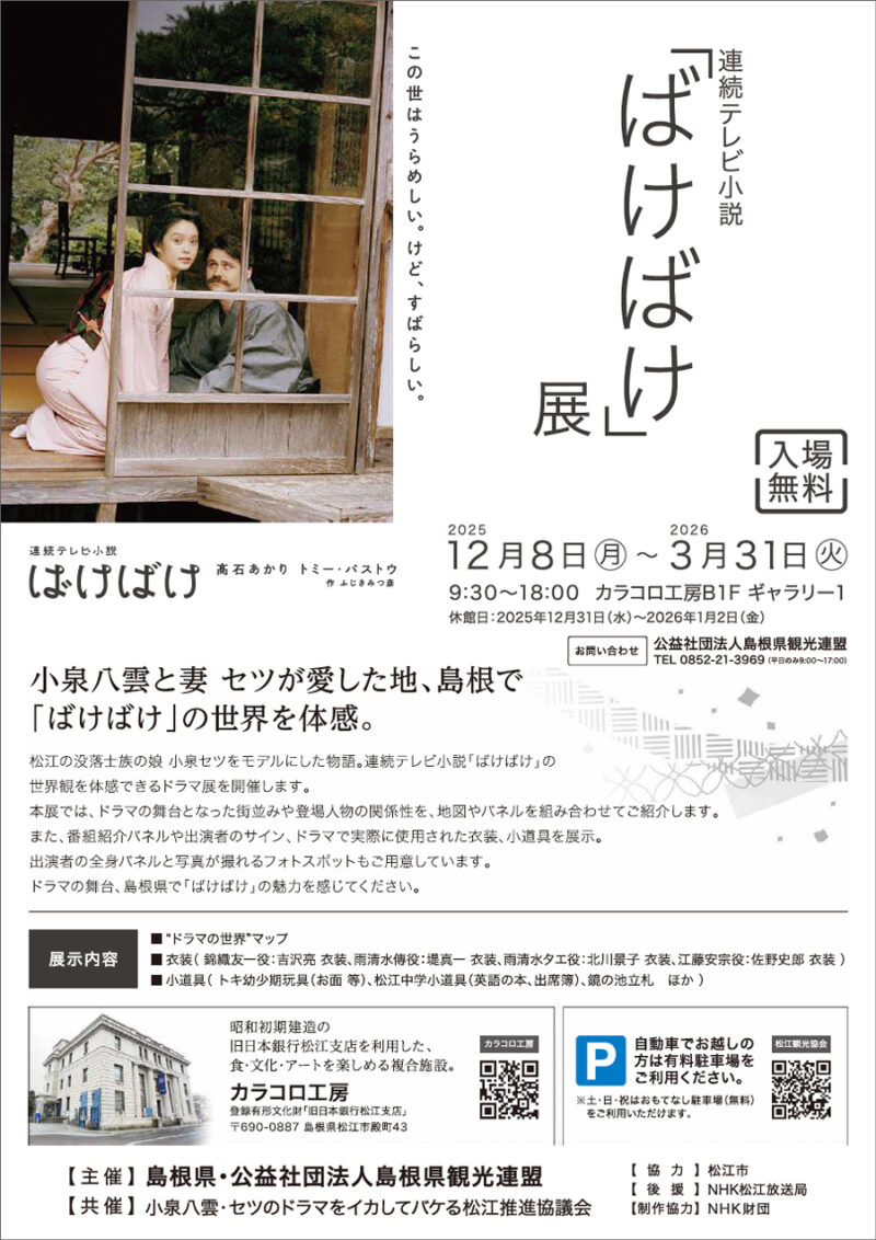 松江の没落士族の娘 小泉セツをモデルにした物語。連続テレビ小説「ばけばけ」の世界観を体感できるドラマ展を開催します。